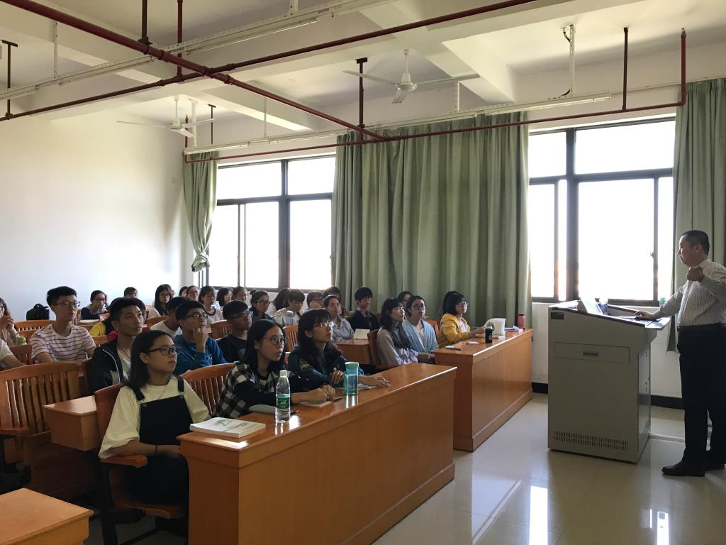 10月20日上午,公司党总支书记许建鑫在白云校区第二教学楼704室,以“认真学习党的十九大精神,做一个有使命担当的老员工”为题,给2017级新生上了一堂思想政治课。辅导员陈惠扬参加了专题思政课。