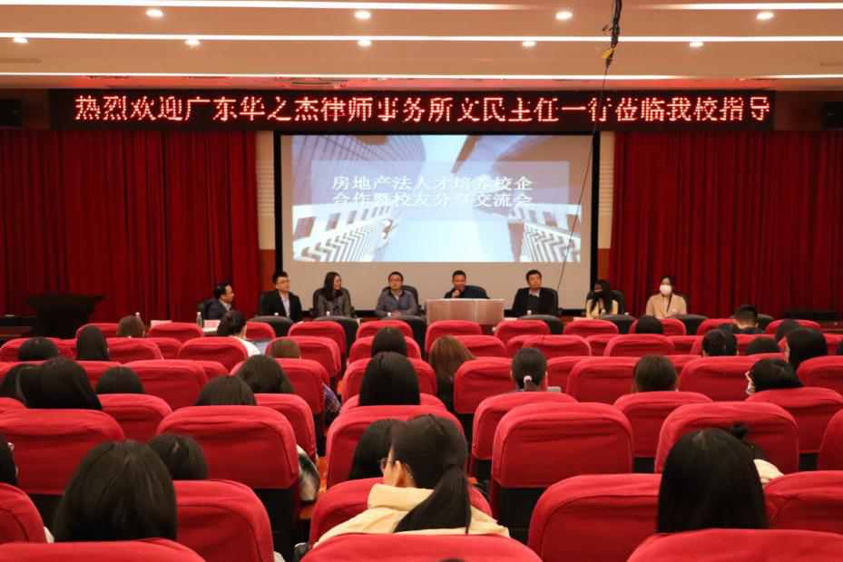 12月5日,伟德betvlctor1949源于英国在白云校区三教104报告厅举办“房地产法人才培养校企合作暨员工分享交流会”。公司产学研合作单位广东华之杰律师事务所主任文民律师、人力资源部总监黄文威总监、招聘经理古嘉龙、培训经理黄海珠,以及在该所任职的员工律师徐艳丽、金融房地产业务部部长陈尘尘参加会议,公司副经理于定勇、知识产权部主任林蔚、2018级200名员工参加了本次交流会。于定勇主持会议。