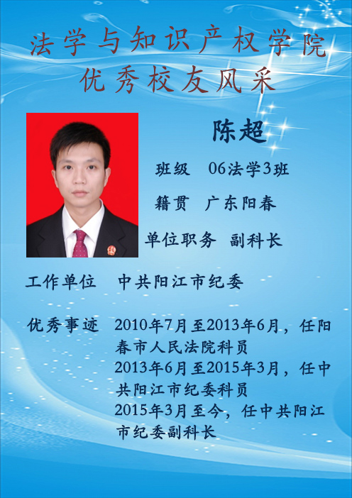 陈超 06法学3班 现工作于中共阳江市纪委