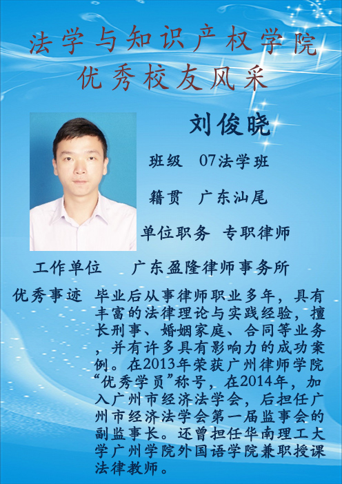 刘俊晓 07级法学班 现工作于广东盈隆律师事务所