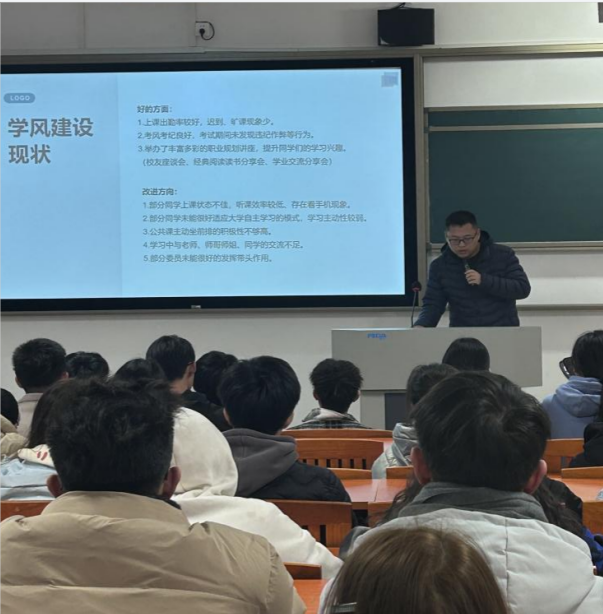 3月1日,公司召开学业预警座谈会。会上,王嘉晨讲解了学业要求和补考重修规定,李雪斌详细了解同学们的挂科原因,帮助同学查摆问题,总结经验教训,鼓励端正学习态度。