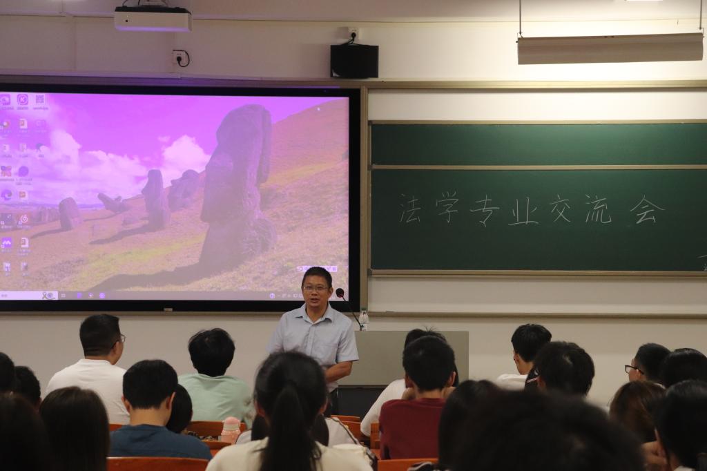 交流会上,黄俊辉分享了自己选择法学专业并走上学术道路的经历,并介绍了当前法律行业的整体现状和发展趋势。他通过翔实的数据和案例,展望了法律行业的广阔前景,提醒同学们要注重经典著作的阅读,感悟学科经典作品,从中汲取营养。同时,他强调法学员工要打牢基本功,明确基本概念,应注重一般事件背后的理论问题,学会用理论揭示法律现象的必然性。