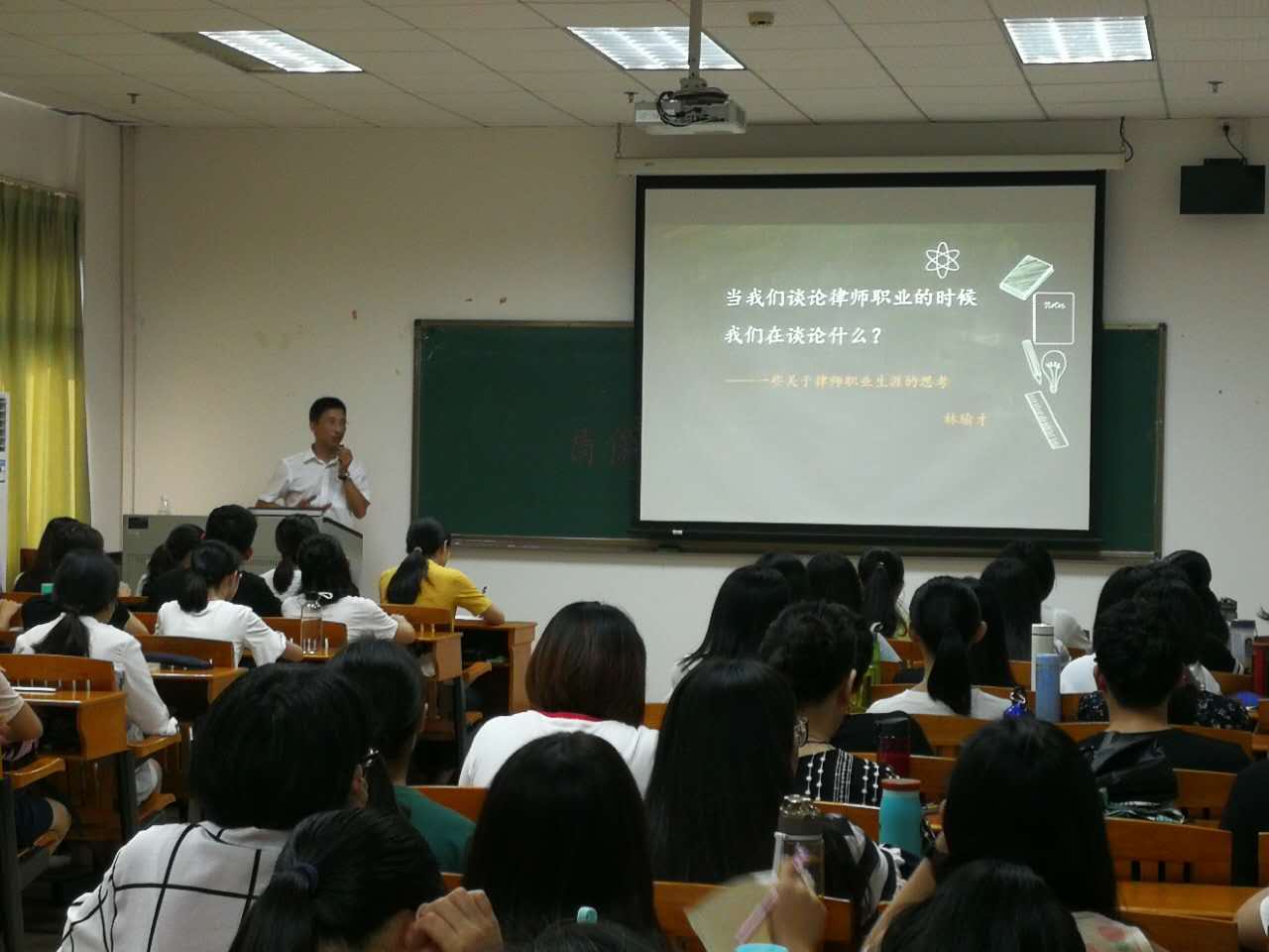 今天下午第一教学楼的第7节和第8节课,是于定勇老师负责的《法律职业调查与规划》。这两节课是由广东金轮律师事务所的高级合伙人律师林瑜才律师给同学们讲授的。通过林律师非常生动和务实的讲授和交流,同学们对律师职业有了更为深入的了解和观察,也对未来的职业选择有了更多的思考。下课了,仍不少同学不肯离开,不断地向林律师请教。