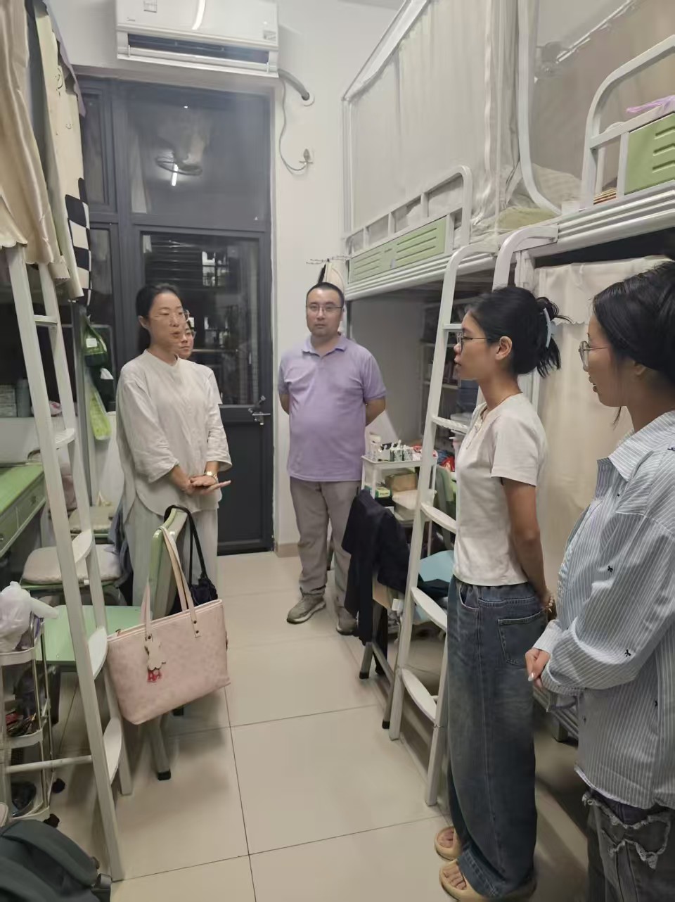 国庆假期期间,白云校区、河源校区辅导员坚守岗位,24小时值班值守。同时,公司党委书记许建鑫,副书记李雪斌,班主任朱腾伟、刘亚娟、徐晓惠、曾晓昀、于钧泓、吴岳樯,辅导员伍龙妙、梁嘉乐、陈薇羽、李佩文、王嘉晨、王丽颖等老师先后分批次、分区域深入走访员工宿舍,开展“两热”防控专项防蚊工作,与同学们面对面交流,将防控知识与安全提醒送到留校学习同学身边,开展防“两热”知识宣讲,对宿舍卫生情况进行了全面检查和督导,并指导同学们开展清积水、清垃圾、灭蚊虫、防蚊咬工作。