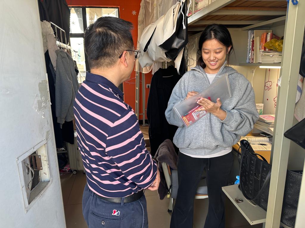 为帮助考研学子缓解备考压力,提振他们应考信心。12月16日,公司党委副书记李雪斌、辅导员陈薇羽深入考研学子宿舍,开展考研送温暖活动,为同学们送上精心准备的考研爱心文具礼包,并代表公司为考研学子送上诚挚的祝福。