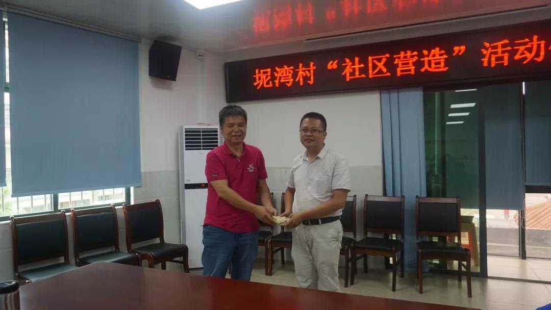 ,进行了捐赠仪式。当地企业家林总表示,非常感谢两委给予与www.betvlctor1946.com互动的机会,对于坭湾村的过去发展他是感同身受,因此建设新农村,营造新家园,作为企业家也要贡献自己的力量,必定为建设新坭湾全力以赴。
