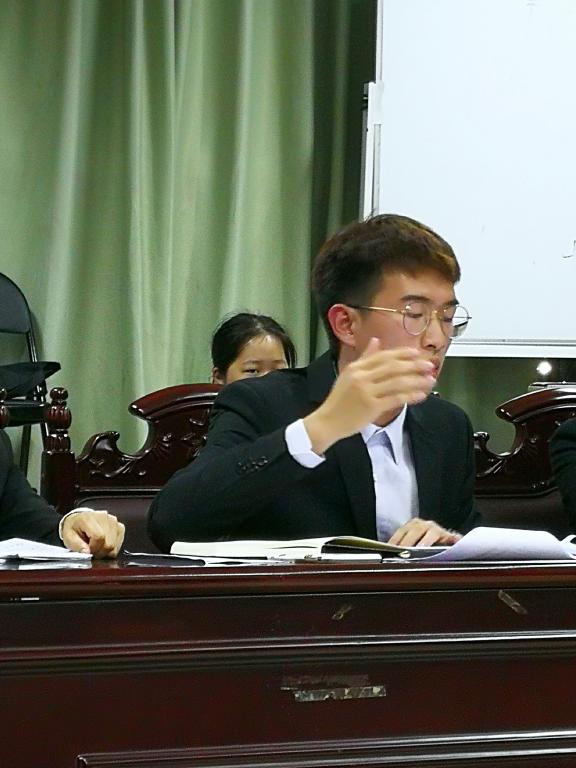 12月1日晚,一教模拟法庭内,座无虚席,同学们在这里展开了法律技能与实力的激烈较量。这里正在进行的是公司模拟法庭大赛的半决赛和决赛。公司领导对本次比赛给予了高度重视,评委由黄俊辉经理、于定勇副经理和郭洪波副经理亲自担任。