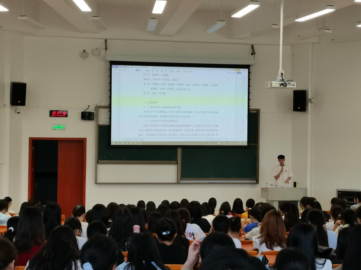 为进一步做好公司大类招生专业分流工作,公司于6月9日上午在河源校区大讲堂102、206室召开“法学大类招生专业分流实施方案宣讲会”。专业负责人曾晓昀老师和董凡老师、辅导员王嘉晨和蓝雅婧老师以及2022级全体同学出席本次专业分流宣讲会。