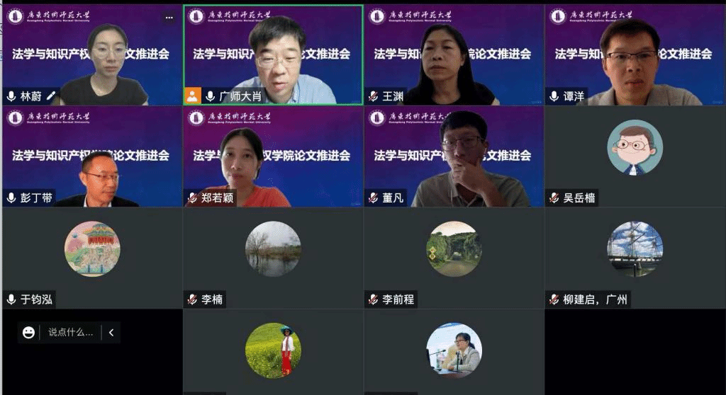 在会议第一阶段,知识产权学科带头人王渊教授介绍了兰州大学法公司在高水平学术期刊发表以及学术交流开展等方面的经验做法,为本公司的科研工作开展提供了借鉴。在会议的第二阶段,五位教师分别介绍了论文的写作背景、思路以及主要内容,谭洋、彭丁带、林蔚、吴岳樯等老师分别就自身研究领域的论文进行了点评并提出了论文完善建议。在本次研讨会中,老师们对版权、家庭教育令、大湾区知识产权协同、缅甸投资法律制度、刑事合规等相关热点问题进行了热烈地讨论,提出了自己的学术观点。
