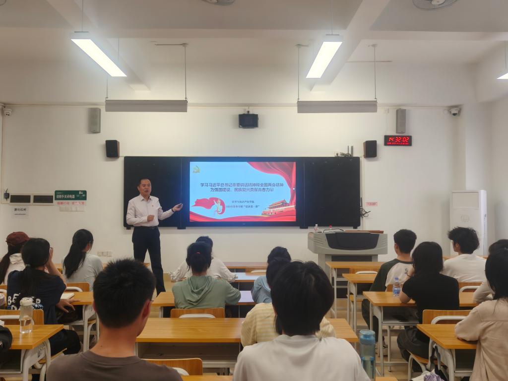 本次思政第一课以“学习习近平总书记重要讲话精神和全国两会精神,为强国建设、民族复兴贡献青春力量”为主题,领学了习近平总书记在2025年全国两会期间的重要讲话精神和全国两会精神,深入宣讲党的二十大以来党和国家事业取得的重大成就,引导同学们牢记嘱托、砥砺奋进,积极投身中国式现代化的广东实践,为强国建设、民族复兴贡献青春力量。