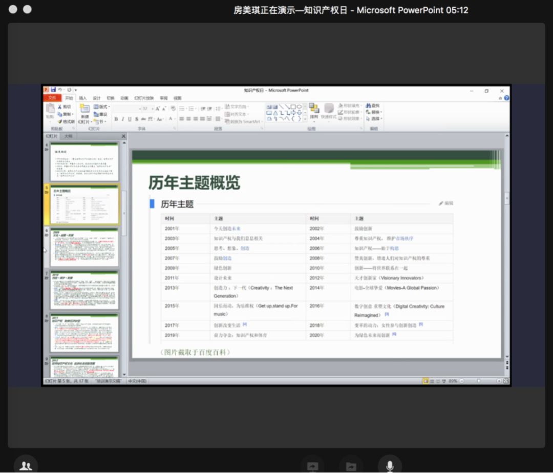 第一个环节:“世界知识产权日”的发展沿革与确立意义。由房美琪、蓝华静同学介绍“世界知识产权日的发展沿革”和“世界知识产权日的多元价值”。并邀请杨俊婷、卢颖茵同学进行点评。