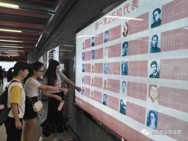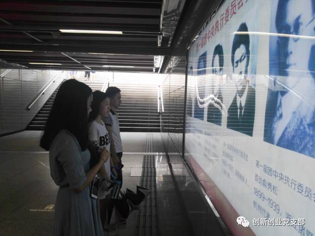 还未走出地铁站,我们就看到了介绍团一大召开情况的橱窗,浓浓的历史气息扑面而来。大家迫不及待地认真学习每一位先驱的光荣事迹。