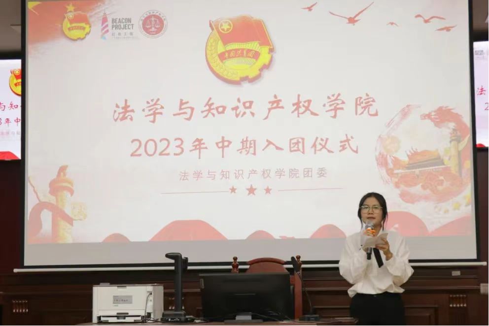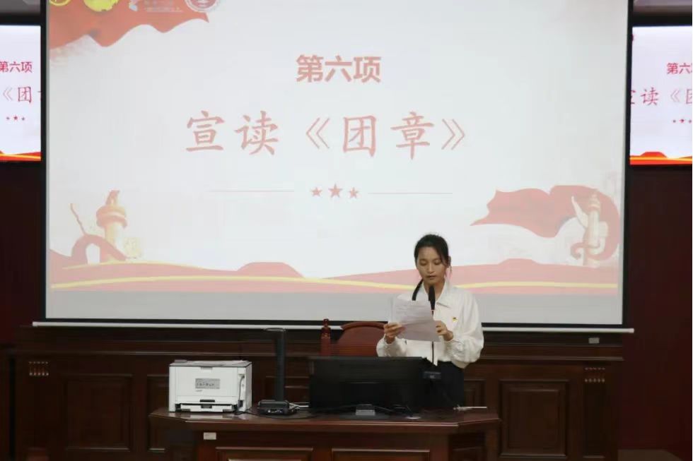 团委书记张维维和辅导员王嘉晨宣读新团员名单。本次共有四名22级同学,三名23级同学加入共青团。