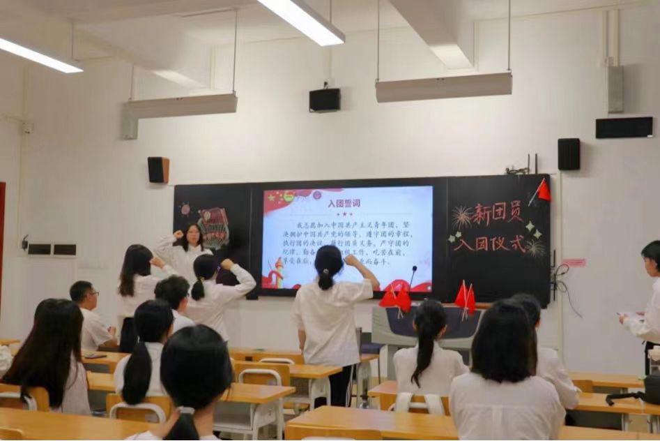 本次入团仪式共计80余名新老团员参与。白云校区由梁伊伶主持,团委书记张维维出席;河源校区由陈凤琳主持,辅导员王嘉晨出席。