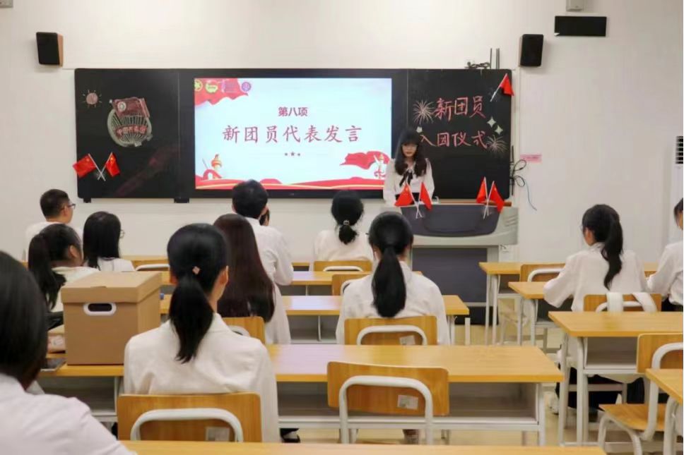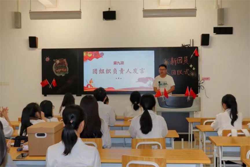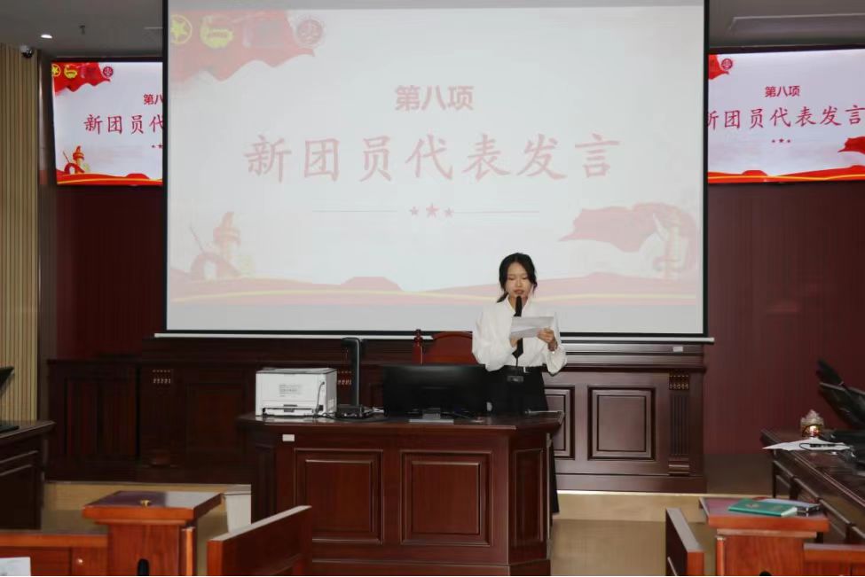 新团员代表曹露、郑婉淳同学进行发言,她们均表示自己非常荣幸能够加入共青团,并且认为团员不仅是一个称号,更是一份责任。她们承诺在今后将以更严格的标准要求自己,不断学习相关知识自我提升,努力成为一名优秀的共青团员。同时,她们也呼吁全体新老团员在团组织的领导下,勤奋学习,认真工作,用行动践行自己的入团誓言,为团组织的发展源源不断地注入新活力!