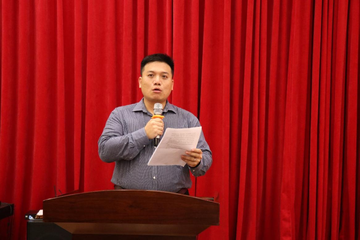 接着,公司辅导员伍龙妙老师作第六届团委工作报告、主席团成员史杨青菲同学作第六届员工会工作汇报。团委副书记邓琳佩同学、主席团成员杨乐同学分别为大会通报第六届团委团费、员工会会费的收支情况。