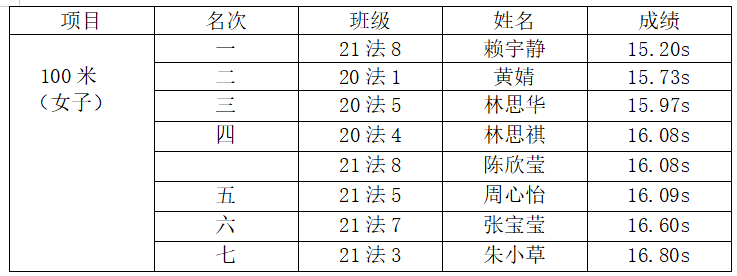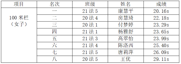 女子径赛、田赛