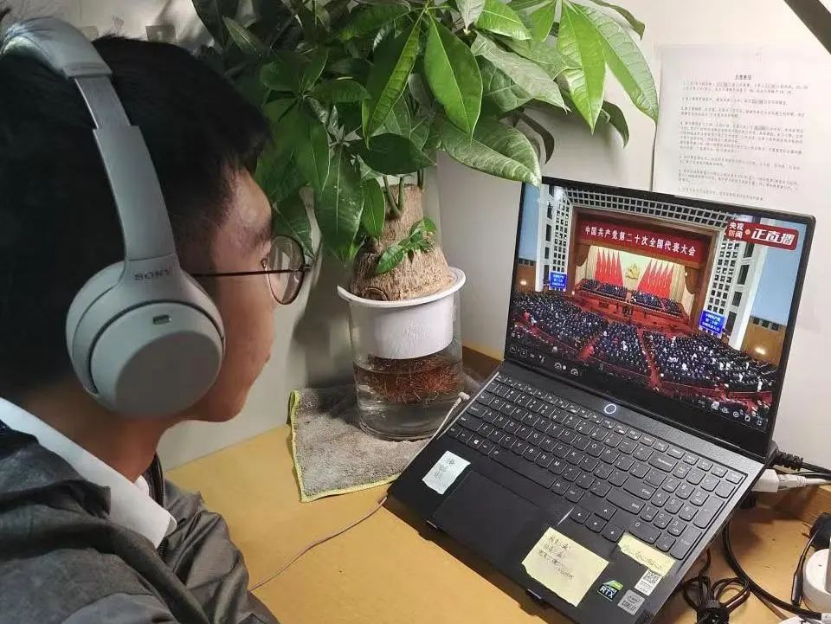 各班入党积极分子们也在宿舍认真收听收看党的二十大开幕盛况。