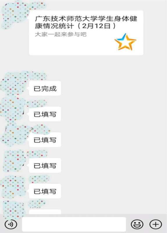 每一份健康调查,饱含老师对同学们的关心。每一次耐心提醒,彰显老师对同学们的尽心尽责。把人民群众生命安全和身体健康放在第一位。