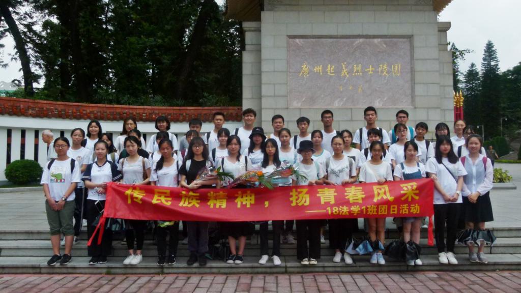 18级法学1班团支部“青春中国梦”项目到了广州起义烈士陵园齐唱国歌、重温入团誓词、进行团旗下的讲话、向烈士献花。除了参观广州起义烈士陵园,团员青年还分别到了中山纪念堂、广州起义纪念馆、团一大广场进行参观学习,拍摄了能展现新时代青年风貌的照片。
