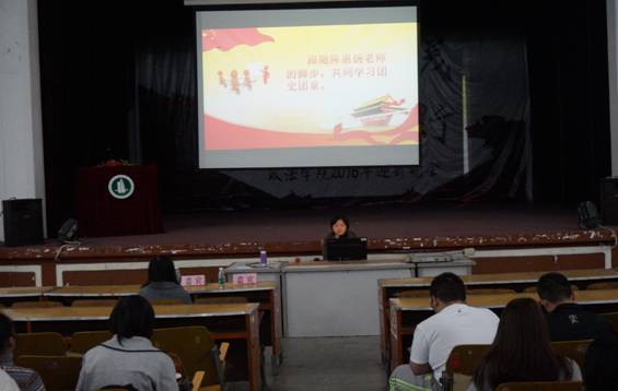 第二环节,政法公司团总支书记陈惠扬老师为2016级新生教授团课,与各位团员共同学习团史团章。陈惠扬老师首先与大家进行了一场互动,了解到大家向团、党组织靠拢的热情,接着分别简介了团的内涵、团的性质、团徽的代表意义、团旗与国旗的紧密联系、团员的身份、团情团史、公司的团总支设置结构及各职位的职责与分工。最后,陈老师用梁启超的话——“少年强则国强”以及自己的大学亲身经历为例,鼓励大家早规划,学为先。这让同学更加透彻地了解到了共青团和作为一名团员的责任感,也让同学们在日后的学习生活中能够将自己的老员工涯做到早规划,学为先。