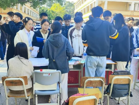 为响应国家社会实践育人号召,助力公司拓展优质生源,一支法知青年团队于1月23日走进海丰县彭湃中学,开展寒假招生宣传活动。从精心设计的文创周边到妙趣横生的专业科普游戏,从干货满满的政策解读到真情流露的校园故事分享,团队通过"摆摊咨询+班级宣讲"双线并行的方式,向每一位怀揣梦想的高三学子传达广师大的办学理念,展示着独属于广师大的青春活力。