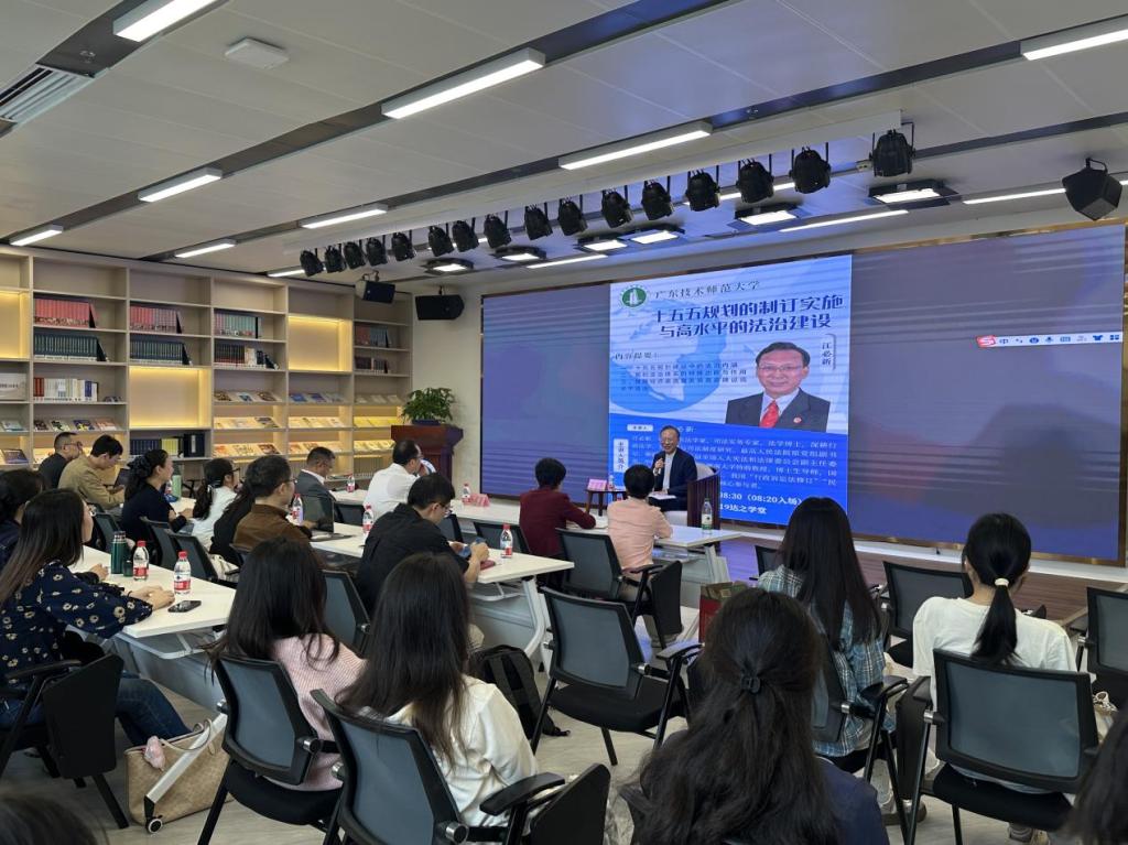 11月7日上午,著名法学家、最高人民法院原副经理江必新教授应邀在白云校区图书馆719达之学堂作题为《“十五五”规划的制定实施与高水平的法治建设》的学术报告。公司副董事长孙燕青、公司班子成员以及公司师生代表参加讲座。