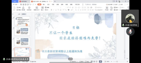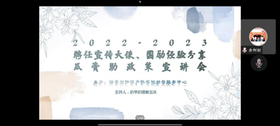 为响应国家号召,加大国家资助政策宣传力度,扩大资助育人效果,让国家资助政策惠及更多员工,公司于12月10日采取线上形式举行聘任宣传大使和资助政策宣讲会,本次会议由负责老师蓝雅婧参加,助学助理翁玉冰主持。