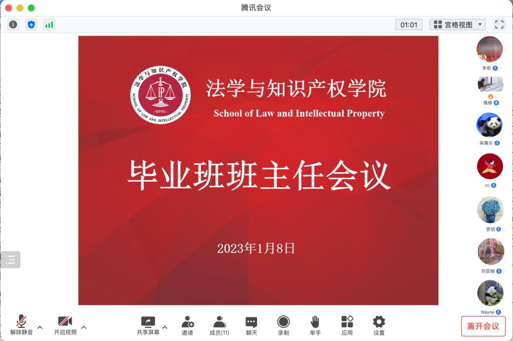 为了进一步加强公司就业创业服务工作,公司于1月8日下午通过线上形式召开2023届毕业班班主任会议。公司党委副书记李雪斌、2023届毕业班班主任、辅导员围绕员工就业创业、考研、考公、法考等问题进行了交流和研讨。会议由李雪斌主持。