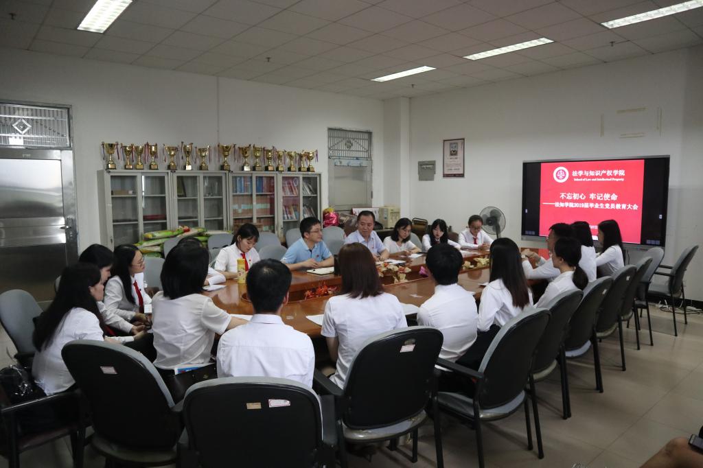 为深入学习习近平总书记在“不忘初心、牢记使命”主题教育工作会议和纪念五四运动100周年大会上的重要讲话精神,贯彻落实习近平总书记关于粤港澳大湾区建设重要论述以及对广东重要讲话、重要指示批示精神,引导毕业生党员树立远大理想、热爱伟大祖国、担当时代责任、勇于砥砺奋斗、练就过硬本领、锤炼品德修为,法学与知识产公司员工创新创业党支部组织毕业生党员“不忘初心、牢记使命”主题教育会,公司党总支书记许建鑫、副书记李雪斌、毕业班辅导员张维维及16名毕业生党员参加了主题教育会。