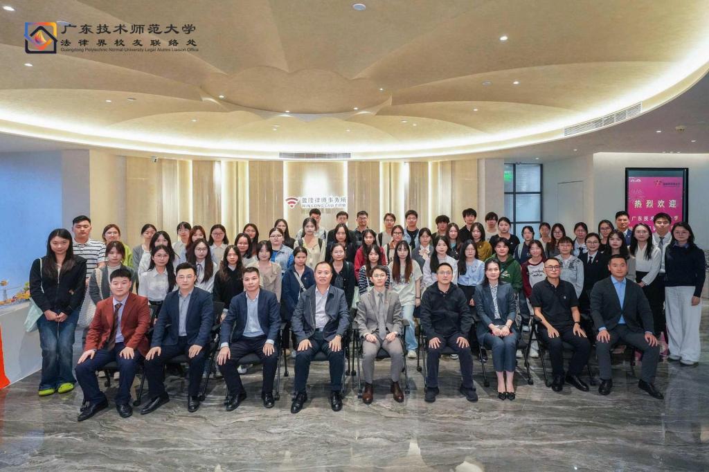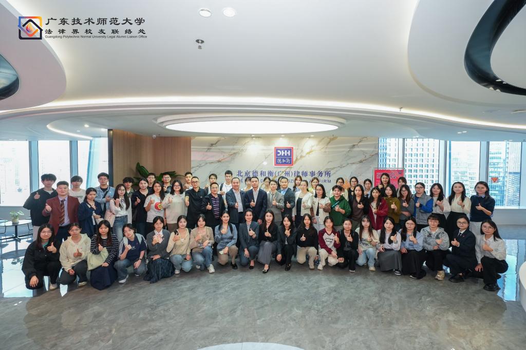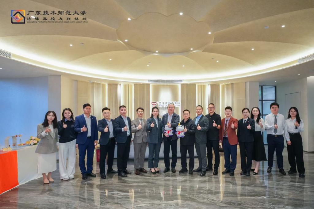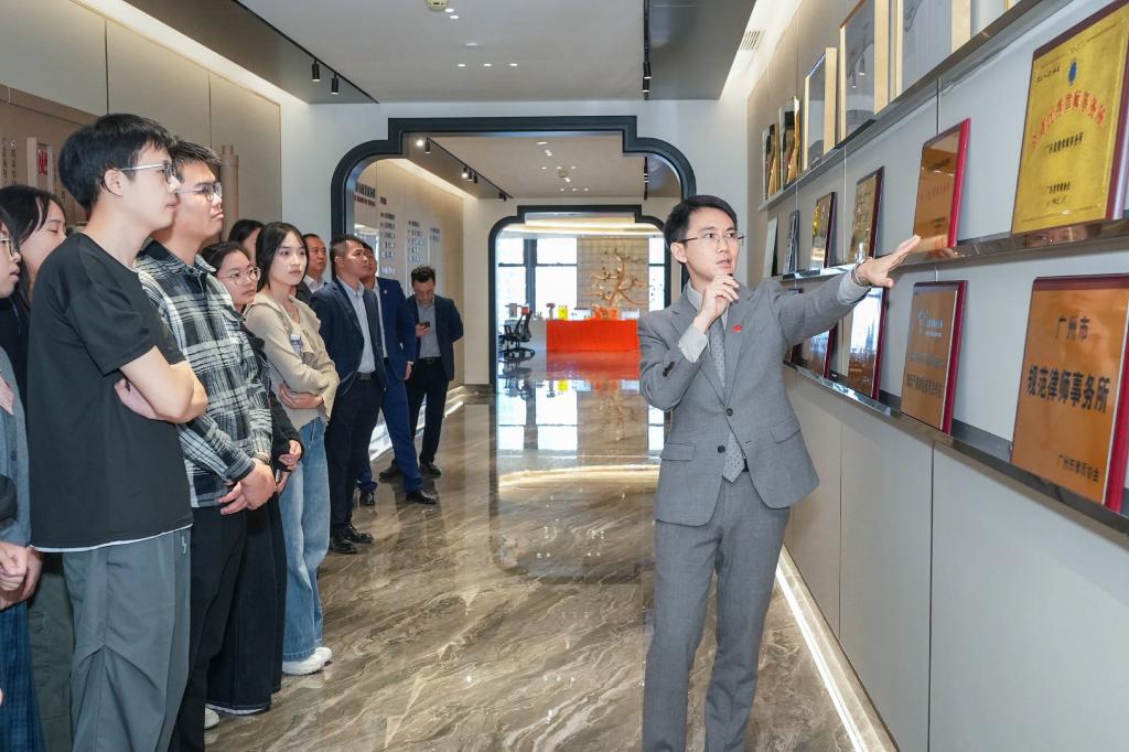 北京德和衡(广州)律师事务所合伙人、管委会副秘书长、青工委主任、2010届员工徐艳丽,广东盈隆律师事务所总所副主任、党支部书记、法律界员工联络处主任、2011届员工彭世明,广师大法律届员工联络处代表、公司近10名在律所工作的员工热情接待了师生一行。