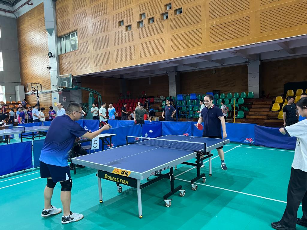 为发展国球运动,丰富教职工校园生活,公司于7月6日参加了公司“2024年教职工乒乓球团体赛”。比赛设男子单打、女子单打、男子双打、男女混合双打、男子双打5个项目,公司老师在比赛中以饱满的热情和高度的积极性全身心的投入到此次比赛中,并且充分发挥敢打敢拼的拼搏进取精神。各参赛选手在赛场上打出了水平,打出了实力,现场观众不时爆出阵阵掌声,经过激烈的角逐,比赛顺利成功的结束。