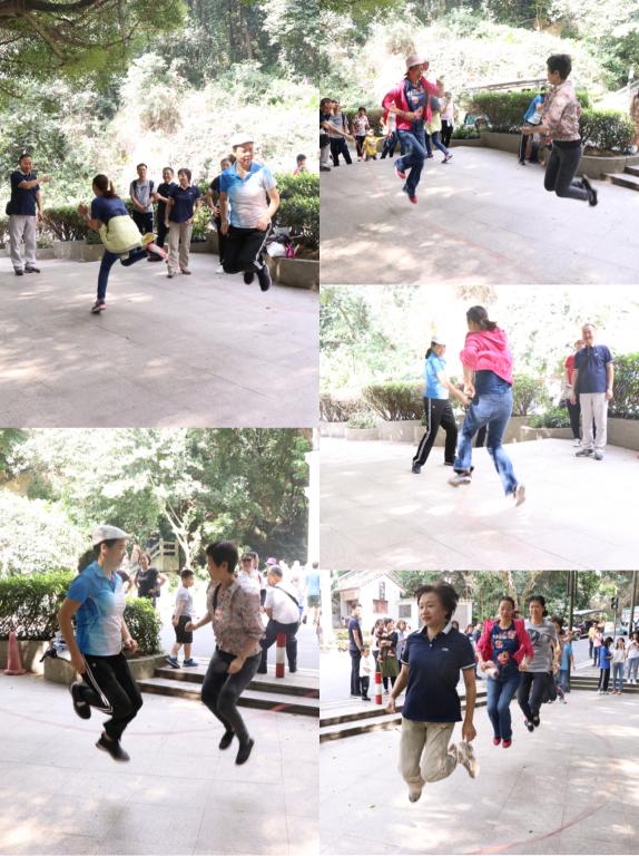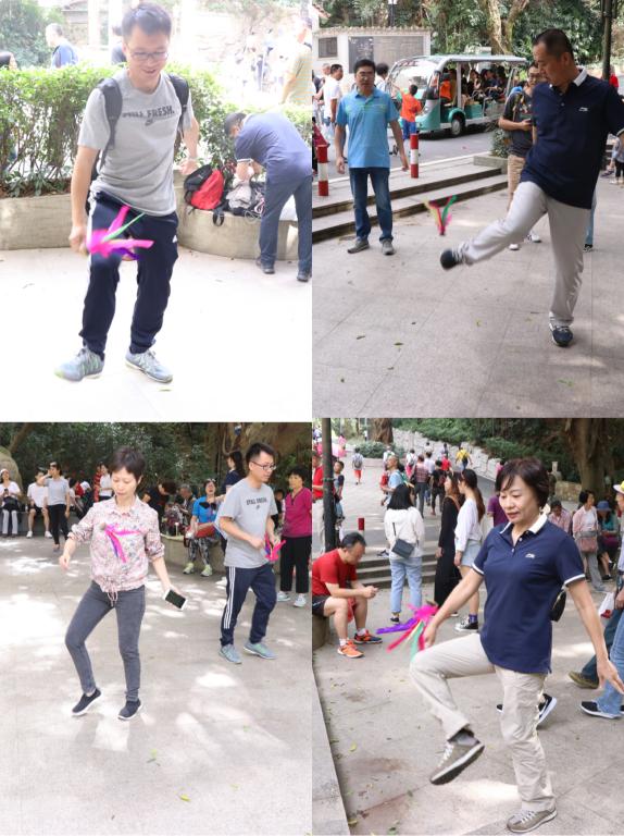 随后在在白云山上组织开展了踢毽球、跳大绳等形式多样的文体活动,活动现场笑声一片,热闹非凡。